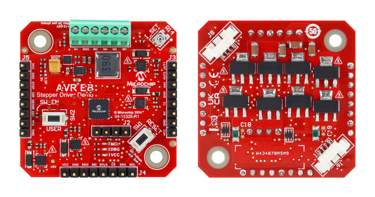 Rodzina mikrokontrolerów AVR® EB została zaprojektowana do sterowania silnikiem za pomocą nowych zintegrowanych urządzeń peryferyjnych Timer/Counter Type-E (TCE) i Waveform Extension (WEX) w celu generowania sygnałów sterujących dla silników. Nowy projekt referencyjny AVR EB, oparty na Multi-Phase Power Board (MPPB), wykorzystuje te peryferia do stworzenia inteligentnego sterownika silnika krokowego, który montuje się z tyłu silnika krokowego o rozmiarze NEMA 17 (42 × 42 mm).